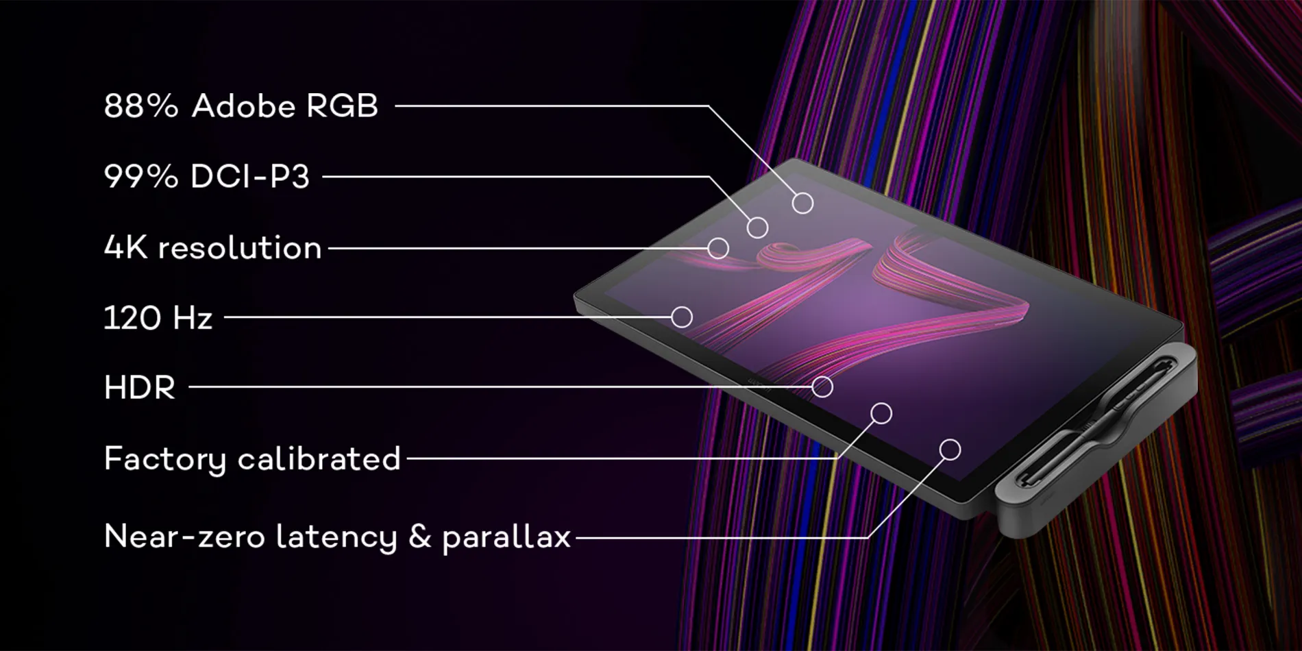 - Near-zero pen-to-screen latency and parallax for maximum drawing precision